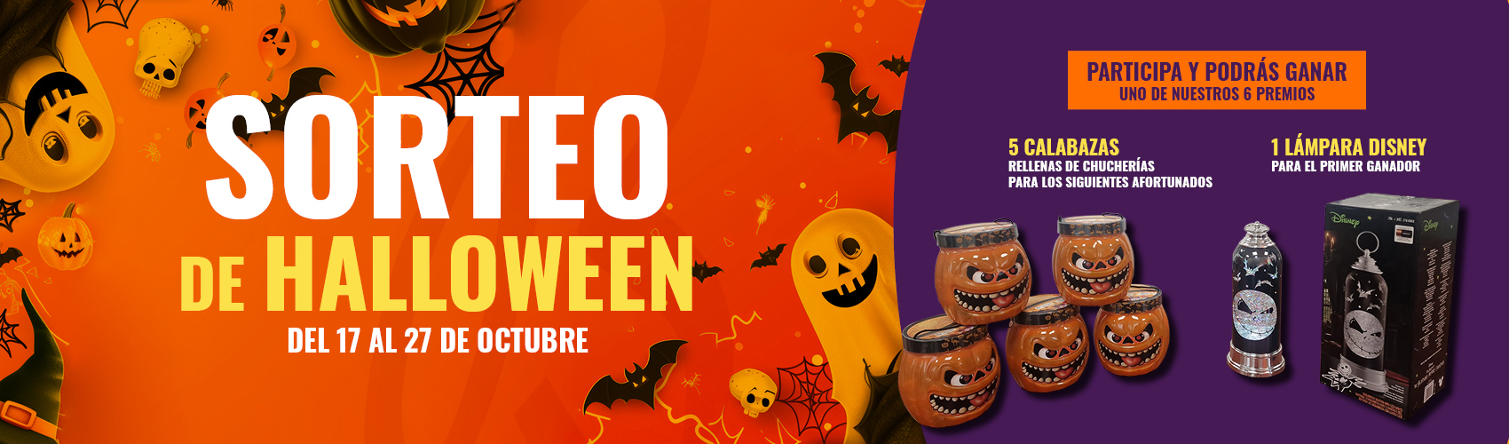 Del 13 al 19 de octubre, celebra con nosotros la fiesta más aterradora del año. Participa en nuestro sorteo de Halloween y podrás ganar una lámpara Disney o una de las cinco calabazas rellenas de chucherías