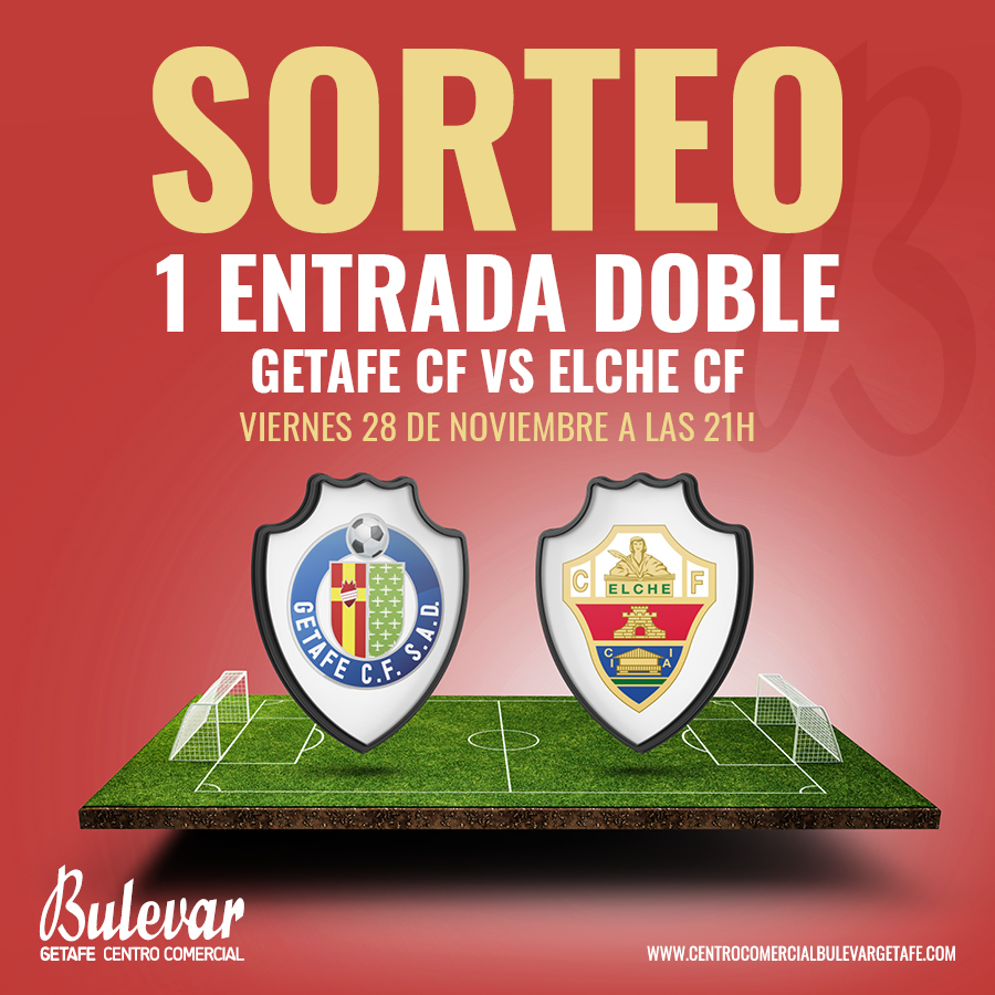 En Bulevar Getafe queremos que disfrutes de la emoción del fútbol en vivo. Por eso sorteamos 1 entrada doble para el partido entre el Getafe C.F. y el Elche C.F., que se disputará el viernes 28 de noviembre a las 21h en el Coliseum.