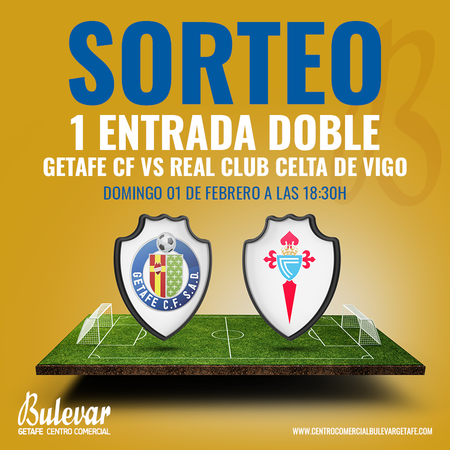 Seguimos animando a los azulones en cada partido. Por eso sorteamos 1 entrada doble para el partido entre Getafe CF y Real Club Celta de Vigo, que se disputará el domingo 1 de febrero a las 18:30h en el Coliseum.